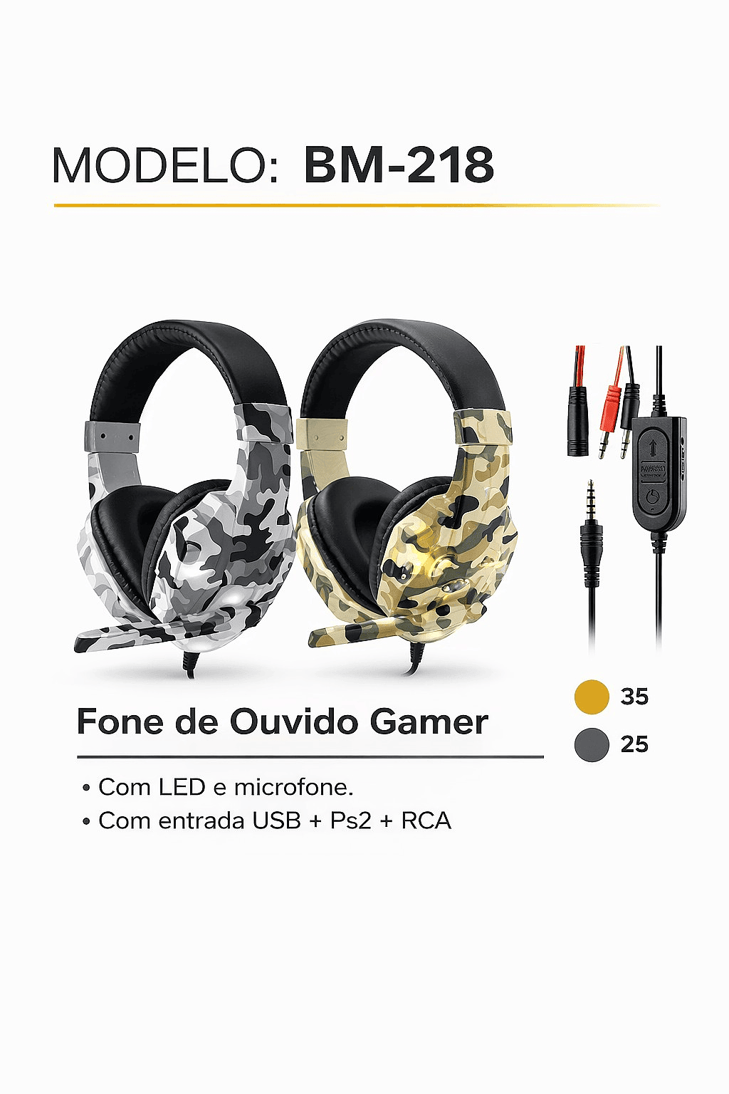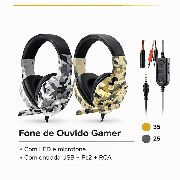 HEADSET GAMER COM LED P\PC + ADAPTADOR PARA CELULAR