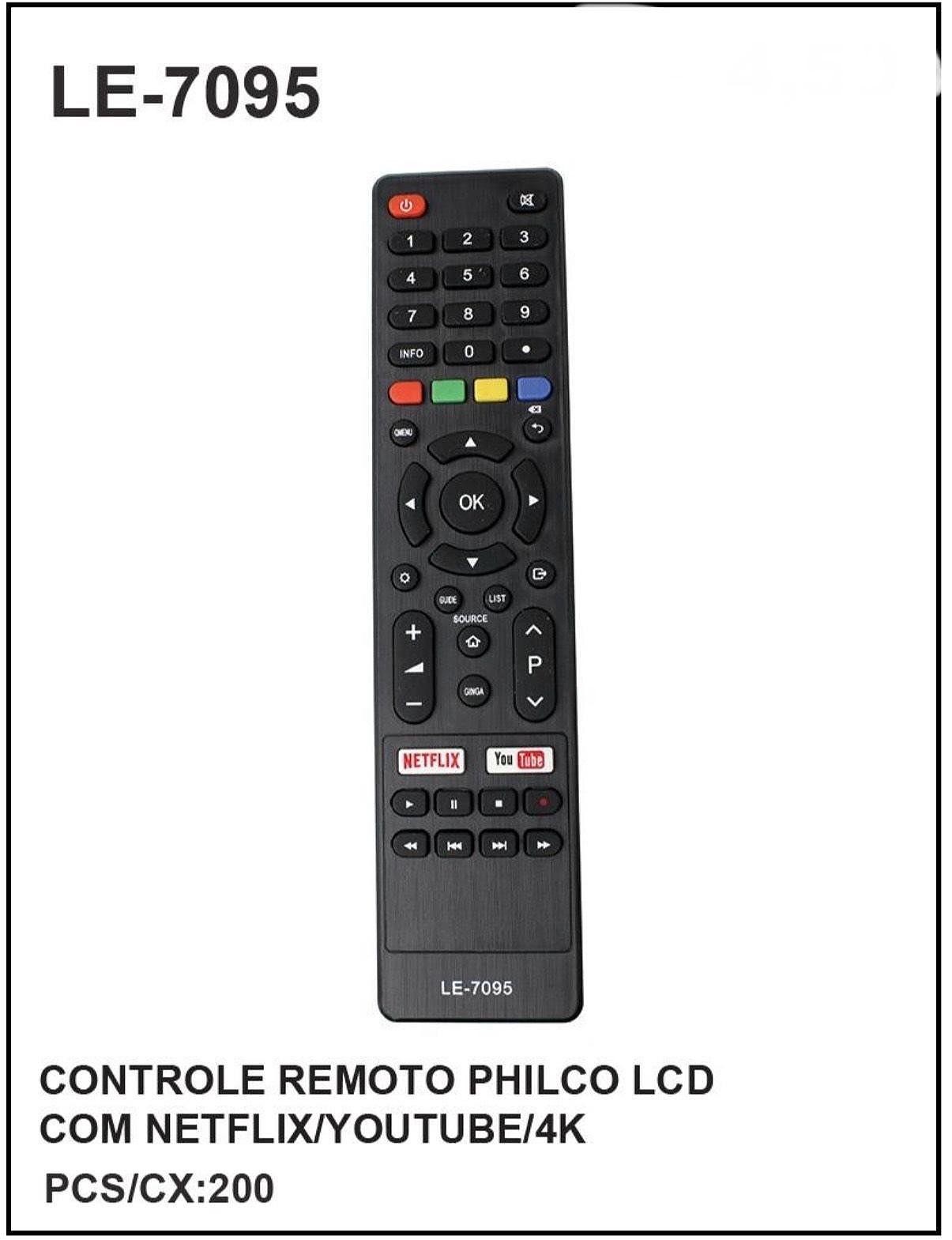 Controle Remoto PHILCO LCD C/ NETFLIX YOUTUBE 4K