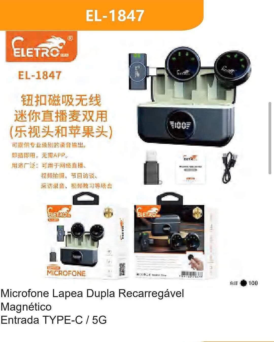 Microfone Lapela Dupla Recarregável Magnético Entrada TYPE-C / 5G