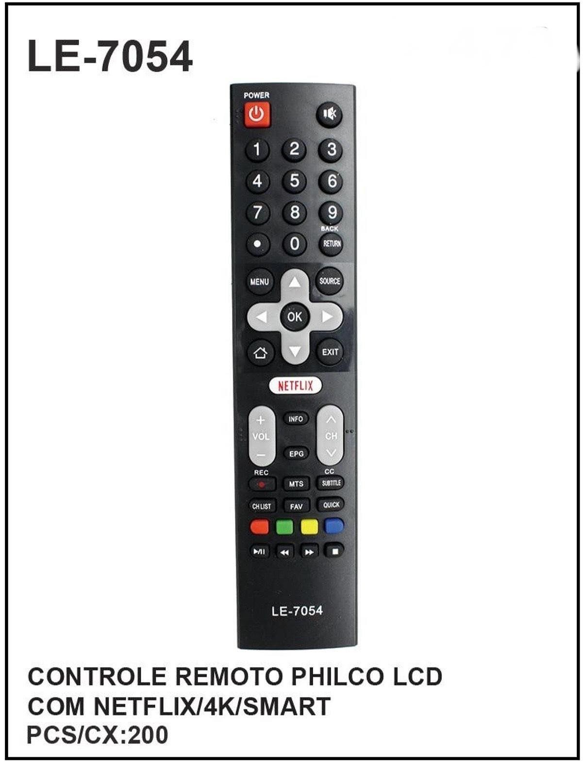 Controle Remoto PHILCO LCD com NETFLIX/4K/SMART
