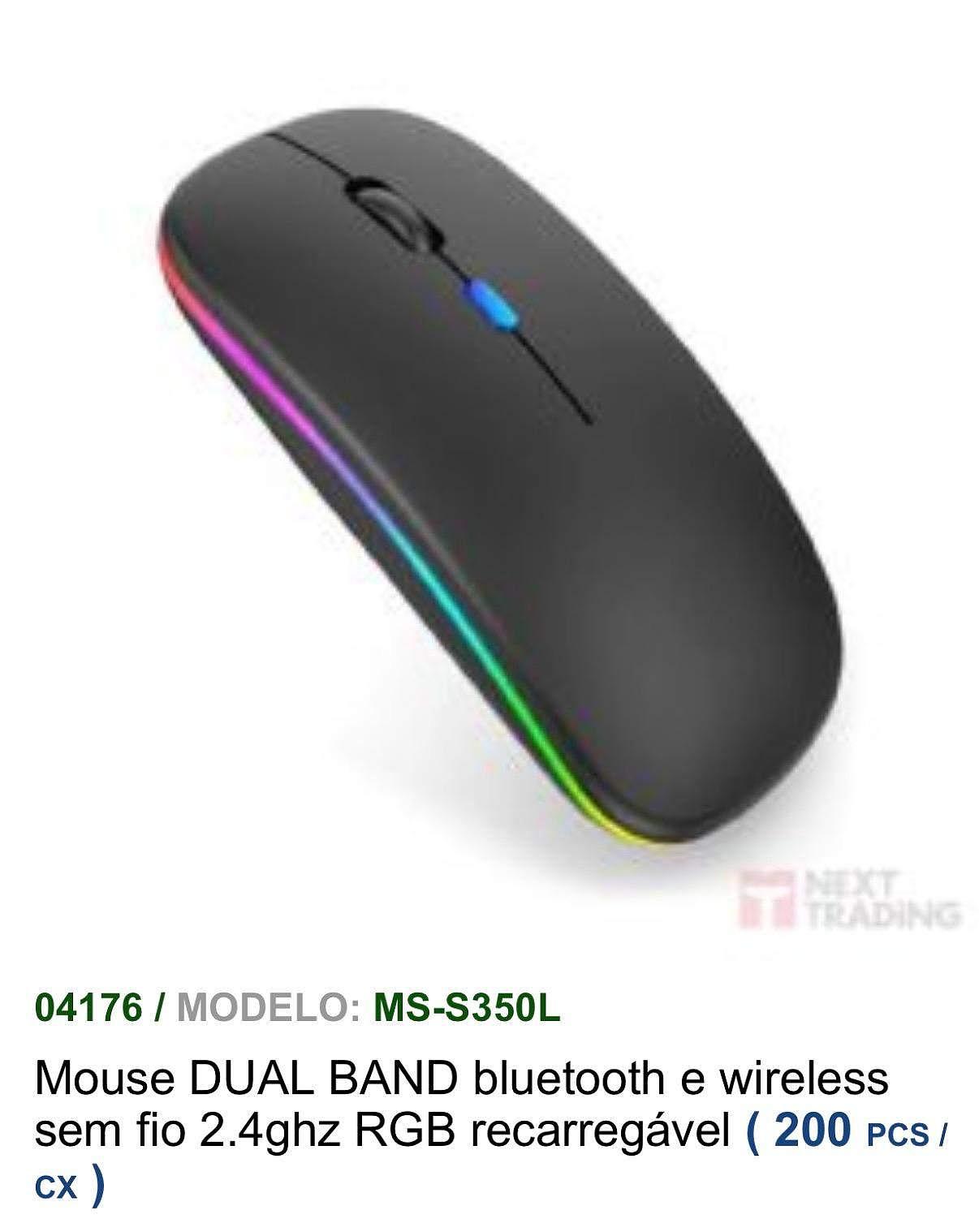 MOUSE DUAL BAND Bluetooth e wireless sem fio 2.4GHz RGB recarregável