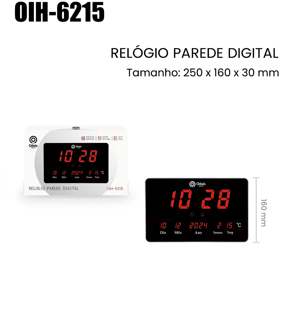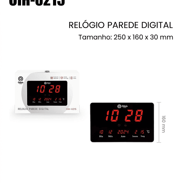 RELOGIO DE PAREDE DIGITAL Tamanho: 250x160x30mm