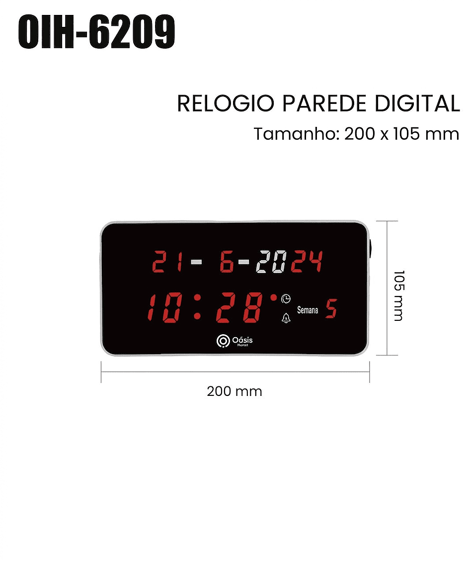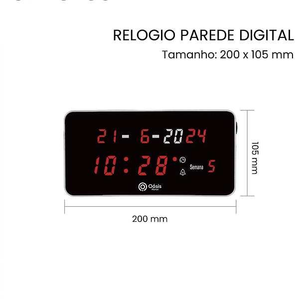 RELOGIO DE PAREDE DIGITAL Tamanho: 200x105mm