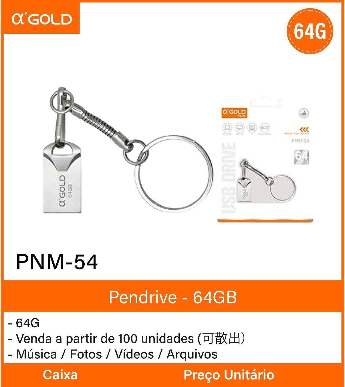 Pendrive Chaveiro 64GB GOLD